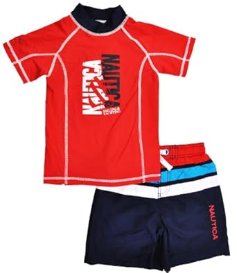 Product Title : Nautica Toddler Boys Red Print Rash Guard Swim Top/T-Shirt With Trunk Shorts 2 Pc Set S4 M5/6 L7 XL7X price